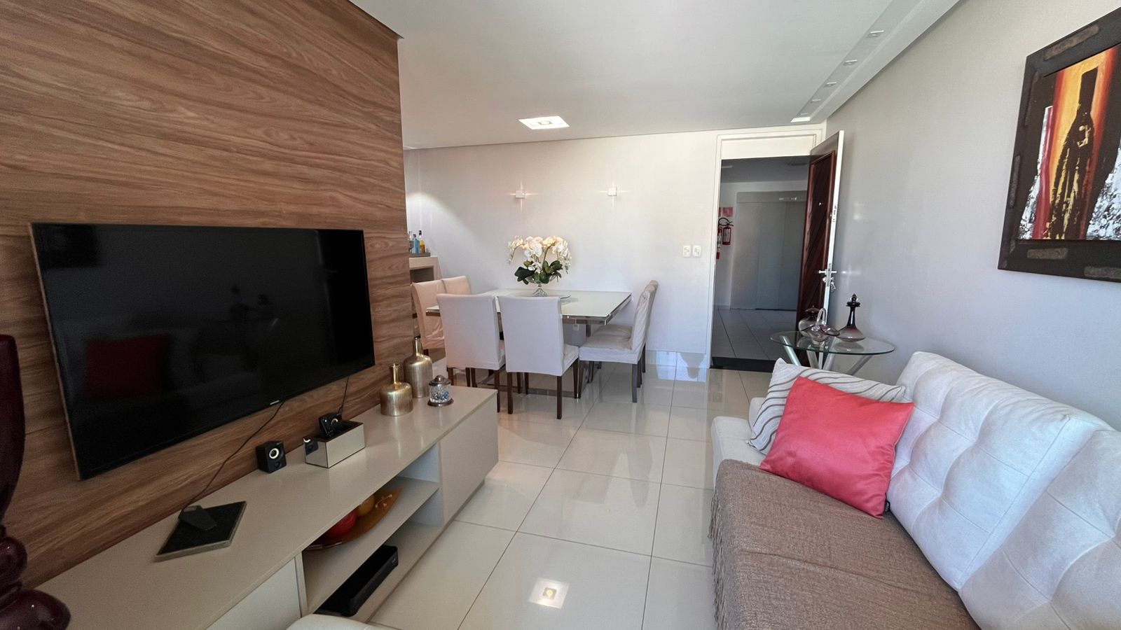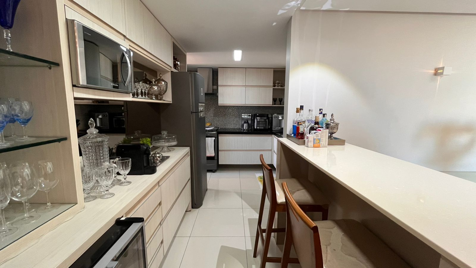 A sala para dois ambientes integra-se harmoniosamente à cozinha americana, criando um espaço moderno e acolhedor, perfeito para receber amigos e aproveitar momentos especiais. O apartamento dispõe ainda de lavabo, área de serviço funcional e 01 vaga de garagem, atendendo com praticidade às necessidades do dia a dia.