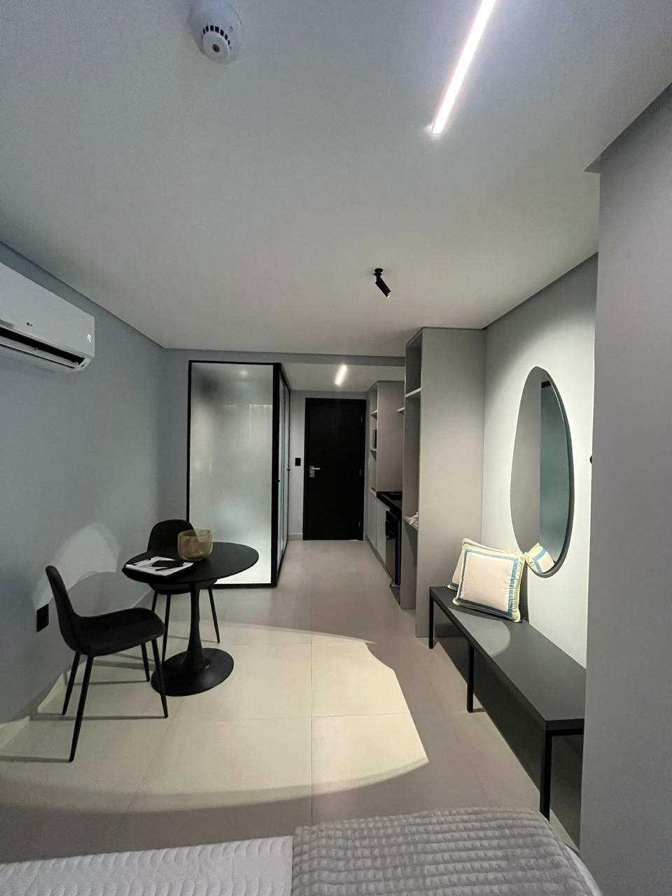 Com 22m² muito bem aproveitados, o imóvel possui posição sul, garantindo conforto térmico e ventilação agradável. Totalmente projetado e mobiliado, cada detalhe foi pensado para oferecer funcionalidade, elegância e praticidade, pronto para uso imediato ou rentabilização.